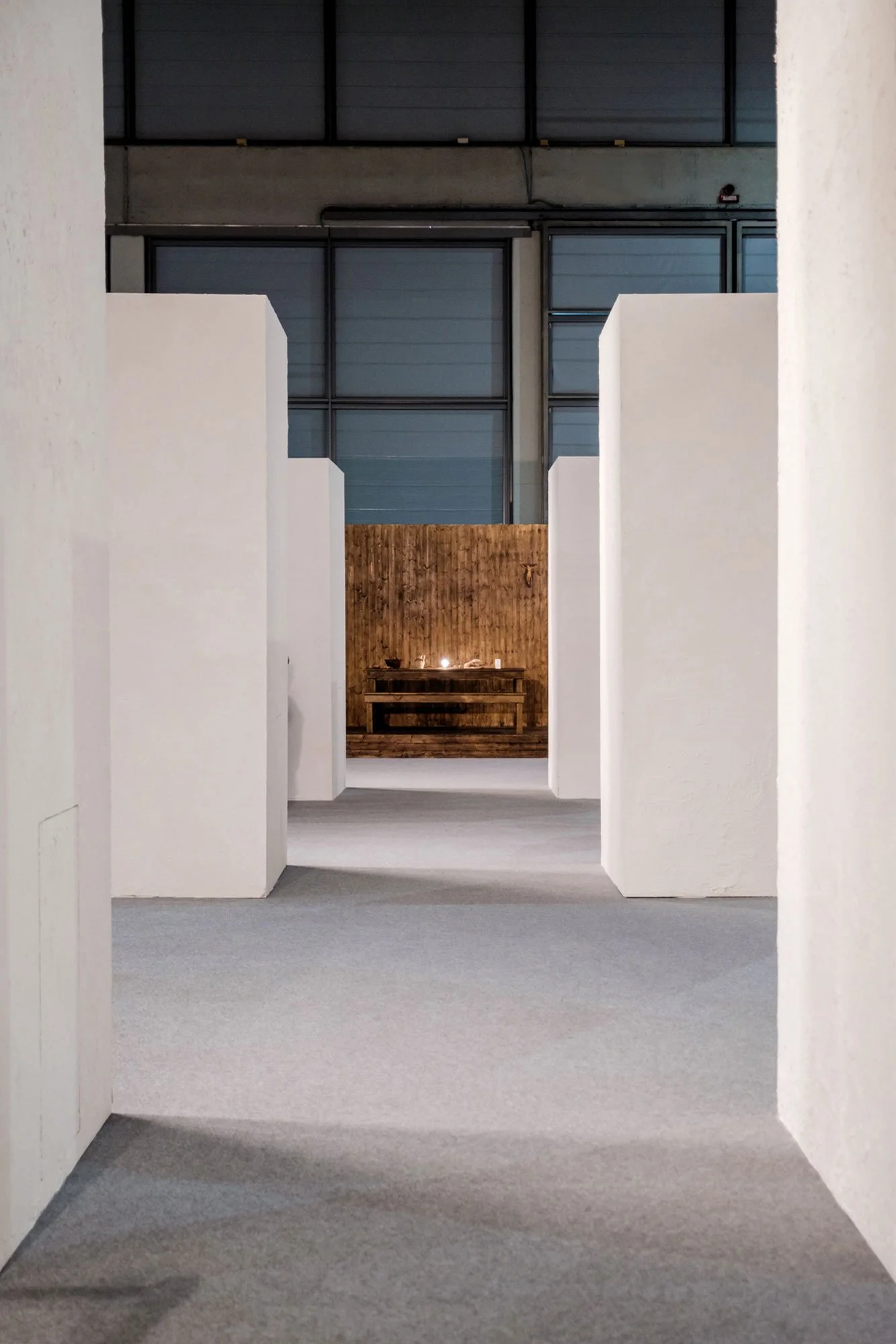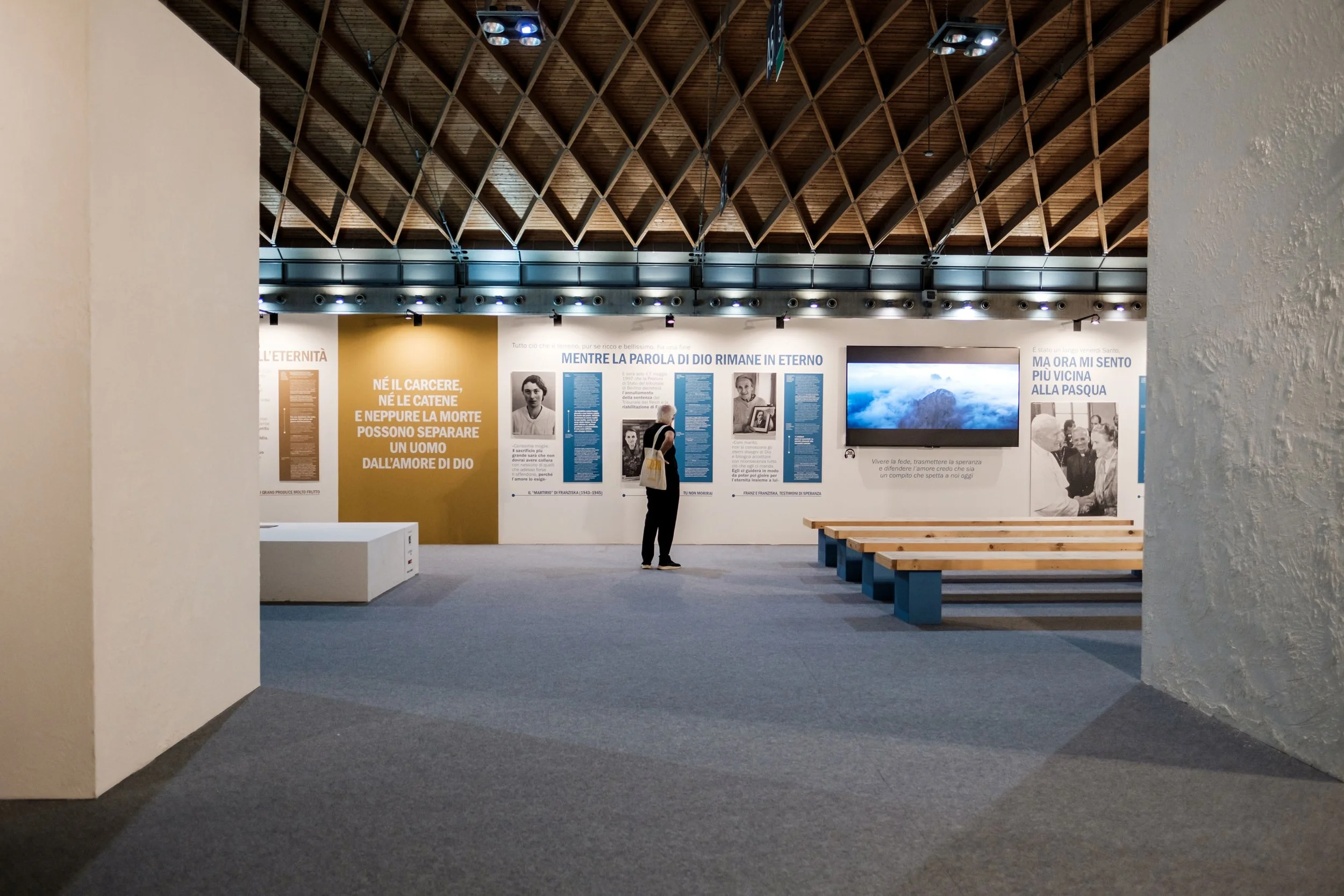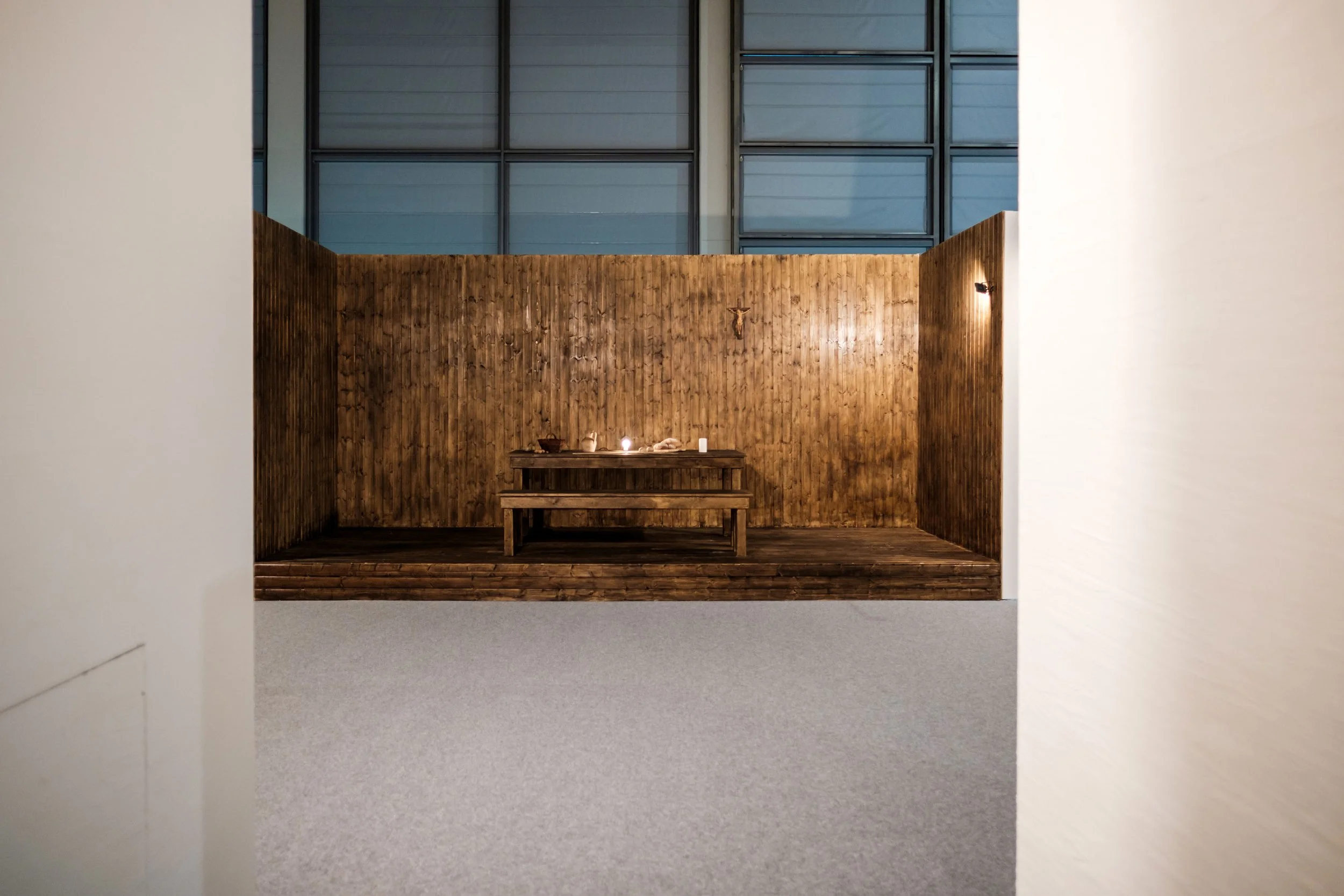 Il progetto ha cercato di tradurre i temi principali attraverso metafore e simbologie rendendo protagonisti i pochi e semplici elementi architettonici che definiscono l’allestimento, attingendo alla simbologia liturgica cristiana.